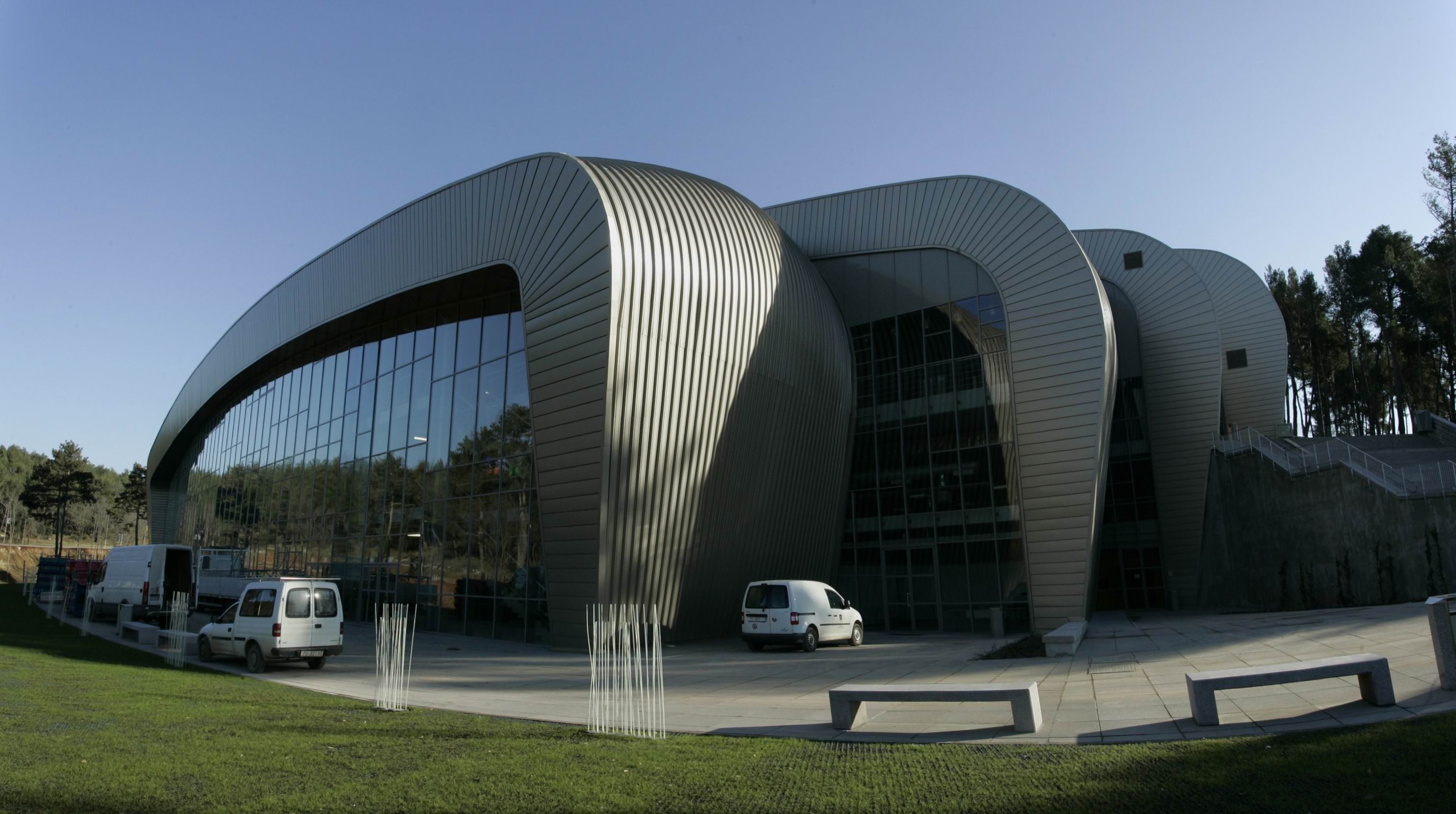 Građevina dvorane je smještena tako da prati prirodnu kosinu terena. Dužim i nižim pročeljem, potpuno ostakljenim, dvorana je orijentirana prema sjeveru, a bočnim punim stranama prema istoku odnosno zapadu. Na južnom dijelu je položena paralelno s obilaznicom Žatika.